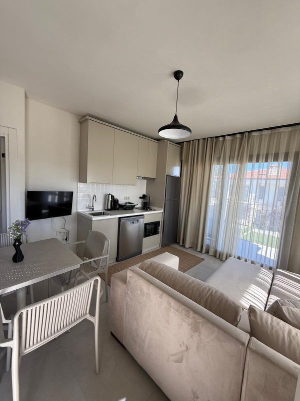 In Alaçatı’s most exclusive location, a modern 2+1 accommodation experience intertwined with nature awaits you. Feel at home with spacious living areas.