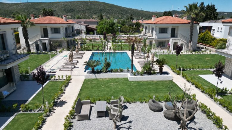 Located in Alaçatı Çamlıkyol, Mara Bahçe offers a perfect setting for peace and relaxation. Discover local restaurants, bars, cafes, and boutique shops just 10 minutes away. The turquoise Aegean beaches of Alaçatı and Ilıca are only about 1.5 km from Mara Bahçe. Built with Alaçatı stone and architecture, Mara Bahçe offers Mediterranean-style accommodation with elegant furnishings. All units overlook a lush garden with a tropical atmosphere and a long swimming pool.